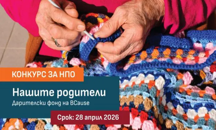 Фондация BCause обявява конкурс „Нашите родители 2026“. Цел на конкурса е да подкрепи граждански организации, които работят за добруването на възрастни хора над 65 години в затруднено материално положение, влошено здраве, самотноживеещи.